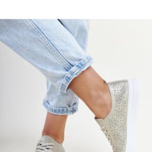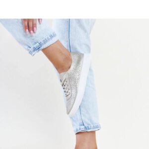 Złote tenisówki z eko skóry Whitley są doskonałym wyborem dla każdej modnej osoby. Mają zaokrąglony czubek, perforowany design i sznurowanie, co sprawia, że są popularne wśród miłośników mody. Niski krój zapewnia wygodę noszenia, a gumowa podeszwa gwarantuje trwałość i stabilność. Wykonane z wysokiej jakości materiałów, te buty zostały starannie zszyte, dodając im elegancji i klasy. Idealne na co dzień i na specjalne okazje. Materiał zewnętrzny: Skóra ekologiczna, Podszewka: Brak, Podeszwa: Guma, Kolor podeszwy: Biały, Zapięcie: Sznurowane, Kolekcja: Lato/Wiosna.
